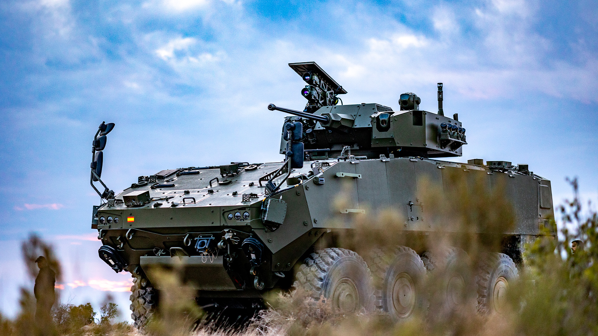 Con la más alta fiabilidad y disponibilidad, garantizamos seguridad y superioridad a las Fuerzas Armadas en el campo de batalla del futuro, dando respuesta a las más altas exigencias en protección, movilidad y potencia de fuego e interoperabilidad.