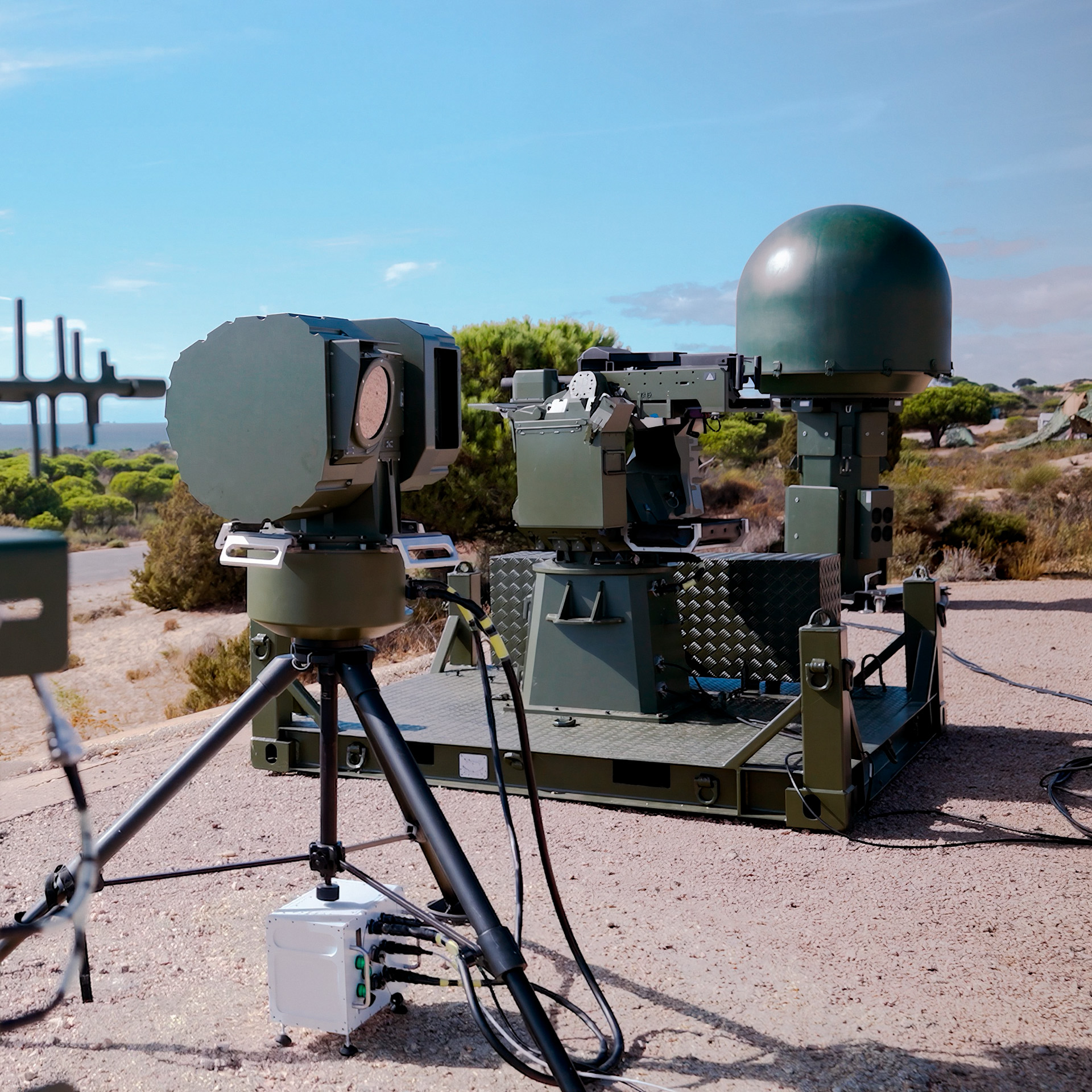 El sistema antidrón de Indra puede desplegarse en diferentes configuraciones fijas, semiestáticas y móviles sobre diversos tipos de vehículos terrestres, así como utilizada en múltiples plataformas terrestres y navales.